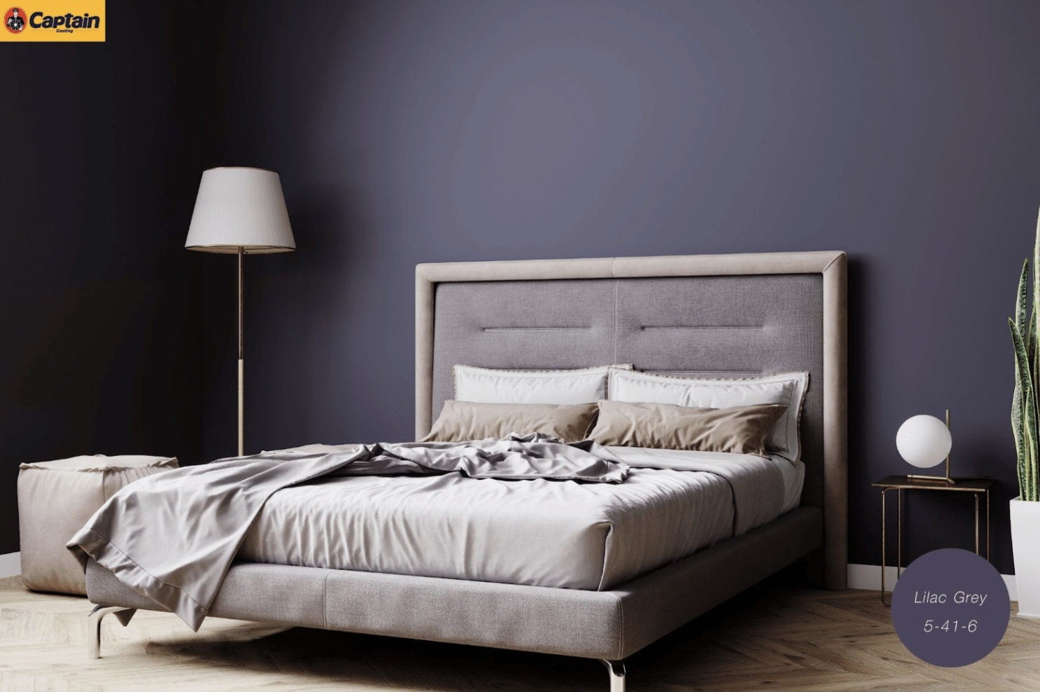 ลดความฉูดฉาดลงมา แต่ยังแอบซ่อนความหวานอยู่เล็ก ๆ สำหรับแบบสีห้องนอนโทนสีม่วงอมเทา เป็นอีกสีนึงที่น่าสนใจ ที่จะช่วยสร้างบรรยากาศภายในห้องให้ดูอบอุ่น อ่อนโยนมากขึ้น โดยอาจจะเลือกตัดด้วยสีโทนเข้มเล็กน้อย เพื่อสร้างจุดนำสายตา อย่างเช่นขอบเตียง โต๊ะเล็ก ๆ เสริมให้ห้องดูไม่น่าเบื่อจนเกินไป